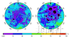 該天文臺的研究小組根據(jù)“月亮女神”的激光高度計測得的數(shù)據(jù)制成了月球表面緯度85度以上的極地的詳細地形圖,并根據(jù)該圖計算了2000年1月1日起的2千天的日照區(qū)域。