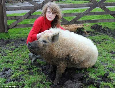 這只名叫伊麗莎白的豬是一個稀有的奧地利品種,由于長著一身酷似綿羊的卷毛,在近日的拍賣會上引起眾多關(guān)注。很多人競相出價,最后一個農(nóng)民Tim Fitton出價250英鎊買下了它,并將之送給女兒。
