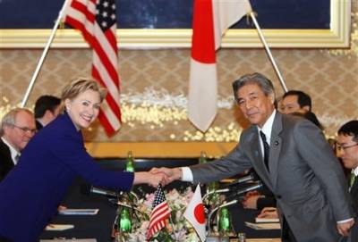 希拉里稍后會和日本首相麻生太郎及防衛(wèi)大臣濱田靖一會談,預(yù)料會在謀求加強(qiáng)美日同盟的基礎(chǔ)上,討論朝鮮核問題和日美同盟關(guān)系,希拉里并會和日方簽署一份協(xié)定,將5萬名派駐沖繩的美國海軍陸戰(zhàn)隊(duì)員中的8000人調(diào)往關(guān)島。她還會同最大在野黨民主黨黨魁小澤一郎會面。