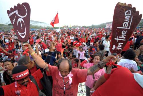 紅衫軍于周六黃昏五時(shí)起到曼谷皇家田廣場再次舉行反政府集會(huì)活動(dòng),約有數(shù)千人參加。