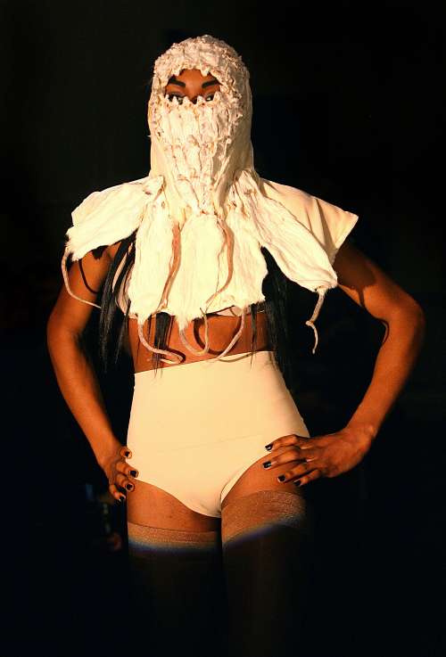 模特兒佩戴著這款遮蓋了整張臉,只露出眼睛的頭飾,在天橋上婀娜多姿地走過(guò),老鼠尾巴在額前晃來(lái)晃去,鼠須輕輕碰觸她的皮膚。這款頭飾是法國(guó)出生的高級(jí)理發(fā)師查利-勒門(mén)杜的作品。
