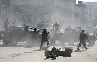 另據(jù)新華網(wǎng)報(bào)道,有目擊者稱,恐怖分子一度占領(lǐng)了司法部大樓,并用自動(dòng)步槍瘋狂掃射。目前,警方已奪回對大樓的控制權(quán),并打死至少4名恐怖分子。此外,在阿富汗安全情報(bào)部附近,安全人員也打死2名準(zhǔn)備發(fā)動(dòng)自殺襲擊的恐怖分子。恐怖分子當(dāng)天還向位于喀布爾北部的一座政府建筑發(fā)動(dòng)了襲擊。