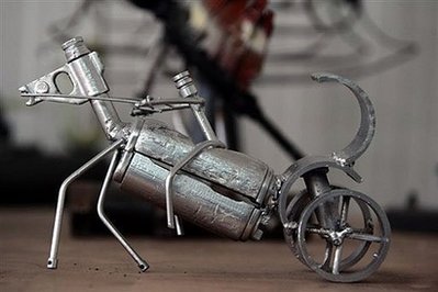 中新網(wǎng)4月10日電 據(jù)法新社9日報道,伊拉克巴格達(dá)舉行的戰(zhàn)爭藝術(shù)展引人注目,隨著戰(zhàn)火的逐漸消退,藝術(shù)愛好者們收集起戰(zhàn)火中槍支炮彈的碎片,極富創(chuàng)意的利用它們組成了一件件象征希望的藝術(shù)品。