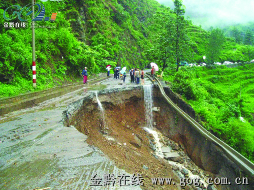 據(jù)了解,興義公路管理局晴隆段沙子養(yǎng)護(hù)站職工6月28日7時(shí)30分在巡查到國道320線2342公里600米(晴隆縣大水溝)處時(shí),發(fā)現(xiàn)該處路基已經(jīng)塌方且路基全部垮塌。據(jù)測(cè)算,塌方體長為35米,寬9米,高12米。由于應(yīng)急措施到位,兩百余輛過路車輛在公路和交警人員的引導(dǎo)下得到疏散,未發(fā)生車輛受損和人員傷亡情況。