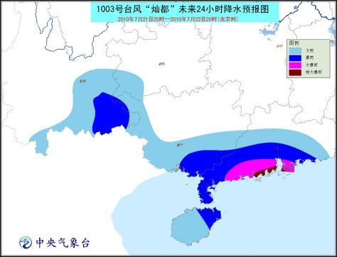受其影響,21日晚上到22日白天,南海中北部海面、海南東部和北部沿海、瓊州海峽、北部灣大部海面、廣東沿海、廣西沿海將有7-9級(jí)大風(fēng),部分海域或地區(qū)風(fēng)力可達(dá)10-11級(jí),“燦都”中心經(jīng)過(guò)的附近海面或地區(qū)的風(fēng)力可達(dá)12-13級(jí)。廣東中南部、海南、廣西東南部將有大雨或暴雨,其中廣東沿海和海南北部的局部地區(qū)有大暴雨或特大暴雨。