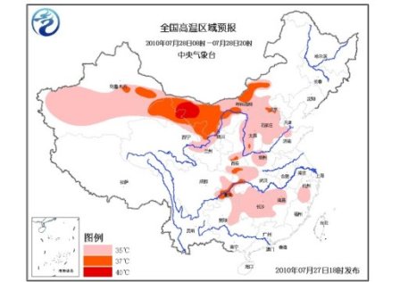 預(yù)計,明天白天,北京大部、天津西部、河北中西部和南部、山西大部、陜西東部及關(guān)中大部、寧夏西部、河南中西部、山東北部、湖北西部、四川盆地東北部、重慶大部、貴州東部、湖南大部、江西西部、浙江西南部等地有35℃以上的高溫天氣,局地最高氣溫可達(dá)37~38℃;內(nèi)蒙古中西部、甘肅中西部、新疆吐魯番盆地及南疆盆地大部等地將有35~37℃的高溫天氣,局部地區(qū)最高氣溫可達(dá)40℃以上。