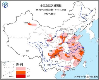 中新網(wǎng)7月30日電 中央氣象臺今日18時繼續(xù)發(fā)布高溫黃色預(yù)警: