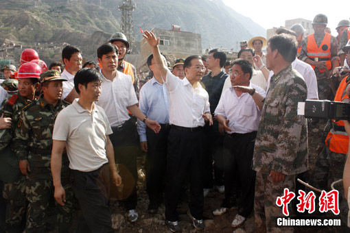 8日凌晨,甘肅省舟曲縣因強降雨引發(fā)滑坡泥石流,造成重大人員傷亡,電力、交通、通訊中斷。溫家寶于當(dāng)日中午乘專機趕赴甘肅,途中在天水機場換乘直升機后輾轉(zhuǎn)前往舟曲縣。