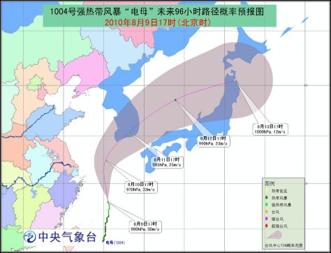 預(yù)計(jì),“電母”將以每小時25公里左右的速度向偏北方向移動,強(qiáng)度還將有所增強(qiáng);10日下午以后“電母”將轉(zhuǎn)向北偏東方向移動,并逐漸向韓國南部沿海靠近。
