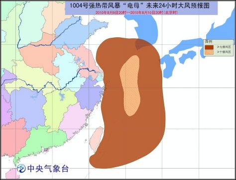 中新網(wǎng)8月9日電 據(jù)中央氣象臺預(yù)報(bào)稱,中央氣象臺8月9日18時發(fā)布臺風(fēng)黃色預(yù)警:今年第4號熱帶風(fēng)暴 “電母”(DIANMU,名字來源:中國,名字意義:神話中的雷電之神)于8日晚在臺灣以東洋面上生成,9日下午加強(qiáng)為強(qiáng)熱帶風(fēng)暴。9日17時其中心位于浙江省舟山市東南方大約390公里的東海海面上,就是北緯28.0度,東經(jīng)125.5度,中心附近最大風(fēng)力有11級(30米/秒),中心最低氣壓為980百帕。
