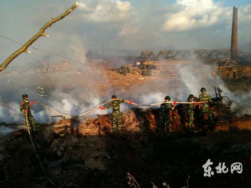 記者17時(shí)10分許自雞西方向進(jìn)入伊春市區(qū),自入城口至事發(fā)現(xiàn)場一路已經(jīng)戒嚴(yán),事發(fā)現(xiàn)場位于河邊,消防隊(duì)員正在從河里取水撲火救援,目前仍有明火煙霧非常大,從很遠(yuǎn)處也可望見,地上有一層厚厚煙花碎屑。(記者 陳靜)