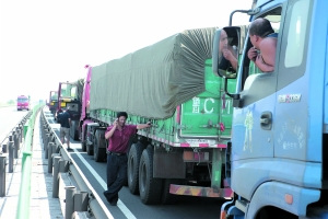 在興和收費(fèi)站和集寧收費(fèi)站,開始限制大型貨車進(jìn)入京藏高速進(jìn)京路段。但是仍有從涼城、呼和浩特等地駛來的貨車不斷延長堵車隊伍。