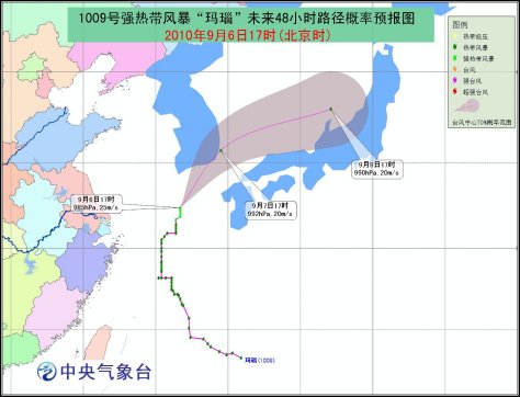 由于“瑪瑙”已遠(yuǎn)離我國(guó)近海,對(duì)我國(guó)海區(qū)的影響趨于減弱,因此解除臺(tái)風(fēng)藍(lán)色預(yù)警。但受“瑪瑙”、西南季風(fēng)和南下冷空氣的共同影響,9月6日20時(shí)到7日20時(shí),渤海灣、渤海海峽、黃海北部部分海域、黃海中部和南部的偏東海域、東海東北部、臺(tái)灣以東洋面將有6-8級(jí)大風(fēng),“瑪瑙”中心經(jīng)過(guò)的附近海域或地區(qū)的風(fēng)力可達(dá)9-10級(jí),陣風(fēng)11-12級(jí)。