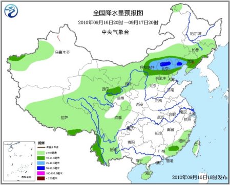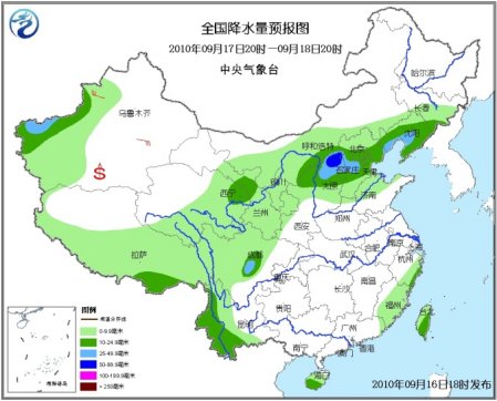 17日20時至18日20時,新疆西部、青藏高原東部和南部、甘肅中部和南部、寧夏、陜西北部、內(nèi)蒙古中西部大部和東南部、東北中南部、華北、四川中西部、云南中西部、浙江南部、福建大部、臺灣、海南等地有小到中雨或陣雨,其中,山西北部、河北中部、遼寧中西部、四川盆地西部等地的部分地區(qū)有大雨,局地暴雨;上述地區(qū)局部并伴有短時雷雨大風(fēng)或冰雹等強對流天氣。新疆大部、甘肅西部等地有4~6級風(fēng);南疆盆地的部分地區(qū)有揚沙或浮塵天氣。受“凡亞比”影響,東海東南部海域、臺灣以東洋面將有6~8級、陣風(fēng)9~10級的大風(fēng),渤海北部海域?qū)⒂?~7級東北風(fēng)。