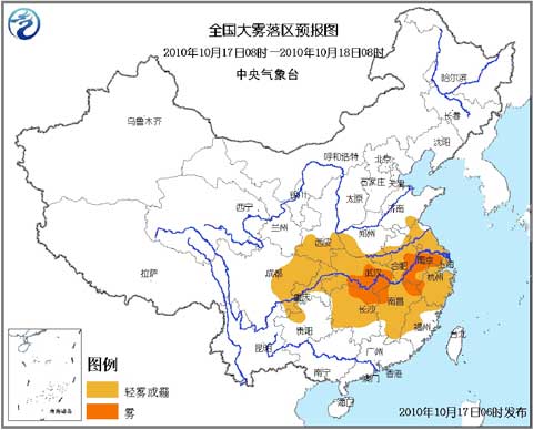 中新網(wǎng)10月17日電 據(jù)中央氣象臺消息,中央氣象臺10月17日06時繼續(xù)發(fā)布大霧藍色預警:預計今天(17日)早晨到上午,黃淮南部、陜西南部、江淮、江漢、四川盆地大部、重慶大部、江南大部、福建中西部等地將有輕霧或霾。