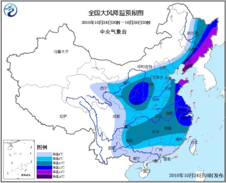 中央氣象臺今天18時繼續(xù)發(fā)布寒潮藍色預警。預計,24日20時至26日20時,西北地區(qū)東部、內(nèi)蒙古南部、東北大部、華北、黃淮、江淮、江漢、江南、華南、西南地區(qū)東部等地將出現(xiàn)6~12℃降溫,其中,黑龍江東南部、吉林東部、遼寧東部、山東半島等地的部分地區(qū)降溫幅度可達14~16℃;甘肅大部、青海中東部、寧夏等地將有雨夾雪或小到中雪,其中,甘肅中部、青海東北部等地局地有大到暴雪。