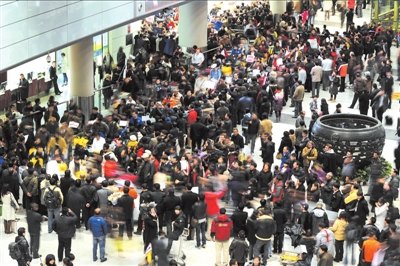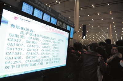 昨天下午,大量乘客滯留在候機(jī)廳內(nèi),延誤通知不斷重播,多數(shù)乘客表示不滿。乘客孫女士氣憤地說(shuō),他們一行20人從北京飛往上海,原定上午9點(diǎn)半起飛,已經(jīng)在此處等候了8個(gè)小時(shí),“剛一問(wèn),對(duì)方說(shuō)可能要明天起飛”,此話引起眾人不滿,多人要求機(jī)場(chǎng)方解決食宿問(wèn)題,但對(duì)方始終稱(chēng)“需要協(xié)調(diào)”。