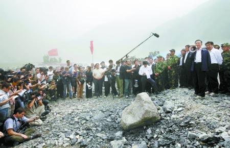 15時55分,新華網(wǎng)再次發(fā)出快訊:胡錦濤總書記作出重要指示,要求盡快搶救傷員,保證災區(qū)人民生命安全。溫家寶總理趕赴災區(qū)。