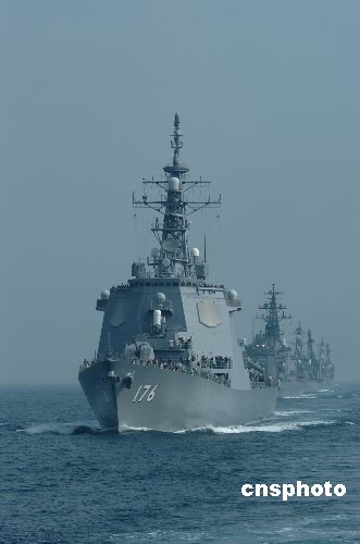 2006年10月,日本自衛(wèi)隊海上閱兵儀式在東京附近的相模灣海面舉行。據(jù)悉,此次閱兵云集了日本全國五大艦艇基地的各類主力戰(zhàn)艦。共有四十八艘艦船,五十架飛機,八千多名自衛(wèi)隊官兵參加了此次大規(guī)模的海上武裝亮相。圖為參加閱兵的導彈護衛(wèi)艦編隊。 中新社發(fā) 王健 攝