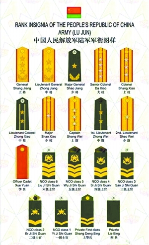 圖:中國人民解放軍陸軍現(xiàn)行軍銜標志圖樣。