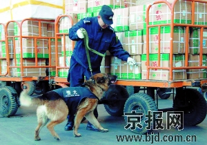 上午9時,4只“犬警官”坐鎮(zhèn)北京西站,在旅客行李房等處忙著緝毒搜爆,還將在廣場、站臺、垃圾箱、行李房、下水道及各陰暗角落搜查可疑物品。