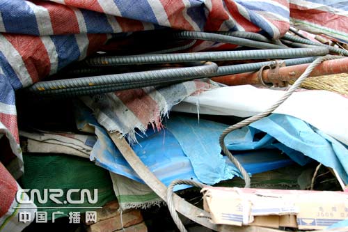記者在事故現(xiàn)場看到,看到大約數(shù)噸重的鋼筋砸在了工棚上,而且正好砸在了工人們睡覺的床上。衣物、洗漱用品、沒有吃完的飯菜散落一地,僅從現(xiàn)場的情況看,當(dāng)時在這里睡覺的工人就是兇多吉少。兩名被壓工人送往醫(yī)院后,因搶救無效死亡。
