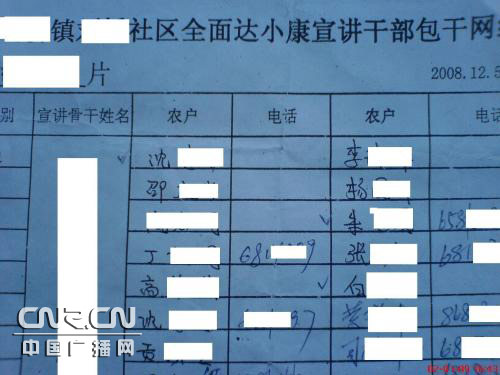 據(jù)村民說,為了順利通過小康驗收,鎮(zhèn)里、村里開了三四次會,干部們層層“承包”,挨家挨戶到每個有電話的村民家進行動員,保證調(diào)查時不說錯話。對那些按照標準答案說好話的村民,進行少則百元多則上千元的獎勵。當?shù)刂行W(xué)還專門給學(xué)生放了一天假,老師要求學(xué)生把標準答案背熟記牢,貼在電話機旁邊,協(xié)助家長應(yīng)對小康驗收電話。