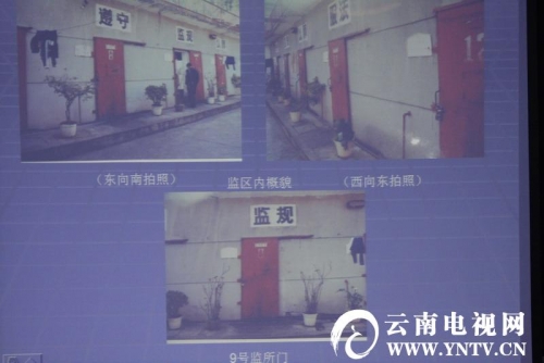 在今天上午的通報(bào)會(huì)上,晉寧縣公安局進(jìn)行了通報(bào)情況,死者李喬明,25歲,白族,死亡原因是因?yàn)橥O(jiān)舍在放風(fēng)時(shí)候玩游戲,因?yàn)樵谟螒驎r(shí)發(fā)生口角,其中一名踢了死者一腳,導(dǎo)致撞在鐵柱上,導(dǎo)致頭部受傷致死。晉寧縣公安局制作事件發(fā)生地點(diǎn)圖片,提供給調(diào)查團(tuán)一行。(來(lái)源:云南電視網(wǎng))
