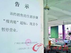 市食安辦昨日公布,目前已查明導(dǎo)致本次“瘦肉精”中毒的生豬由生豬個(gè)體經(jīng)營(yíng)者分別收購(gòu)自湖南省冷水江市、漣源市、新化縣、衡陽(yáng)縣幾個(gè)地區(qū),通過(guò)天河牲畜批發(fā)市場(chǎng)進(jìn)入廣州市天河、增城的肉菜市場(chǎng)進(jìn)行售賣。