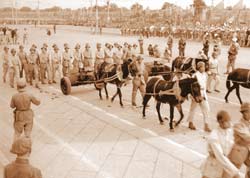 他說(shuō),當(dāng)時(shí)炮兵方隊(duì)是第四個(gè)通過(guò)天安門廣場(chǎng)的隊(duì)伍,以輕迫擊炮、重迫擊炮、戰(zhàn)防炮、山炮和野炮、榴彈炮、高射炮等7種上百門火炮陣容出現(xiàn)。火炮由小到大,由低到高,依次前進(jìn),有的火炮是用騾馬拽著通過(guò)天安門的。