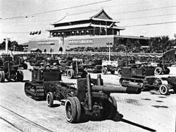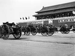 曾參與新中國多次國慶閱兵的北京軍區(qū)原炮兵司令部處長張軍告訴記者,開國大典受閱炮兵部隊裝備,全是從日本侵略軍和國民黨軍隊手里繳獲的戰(zhàn)利品,其中參加閱兵的90野炮和38野炮,不僅身管短,兩個輪子有的還是木輪子包鐵皮的。盡管當時我軍武器裝備還很落后,但場面恢宏、壯觀,大氣磅礴,全體受閱將士以昂揚精神狀態(tài)、威武雄壯陣容出現(xiàn)在國人面前,并向世界發(fā)出了宣言:中國人民解放軍有信心、有能力保衛(wèi)新生的人民政權!正因為如此,開國大閱兵具有極為重要的歷史意義。