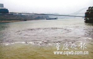 昨上午11時(shí)許,朝天門兩江交匯處約6平方米范圍的水域猶如開了鍋的水,突然接連冒泡。這一奇觀引來不少市民圍觀,以為是江里游來了大魚。沸騰的水面散發(fā)出陣陣惡臭,熏得圍觀者躲避不及。
