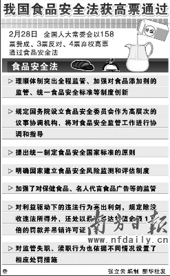 昨日,十一屆全國人大常委會經(jīng)表決,以158票贊成、3票反對、4票棄權(quán)高票通過了食品安全法。