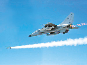 3月中旬,某艦隊航空兵飛行團(tuán)數(shù)架新型“飛豹”戰(zhàn)機(jī)急速而起,穿云破霧直撲作戰(zhàn)海域。發(fā)現(xiàn)目標(biāo),該飛行團(tuán)團(tuán)長李軍迅速鎖定目標(biāo),按下發(fā)射按鈕,導(dǎo)彈如銀空利箭,直奔“敵”艦……