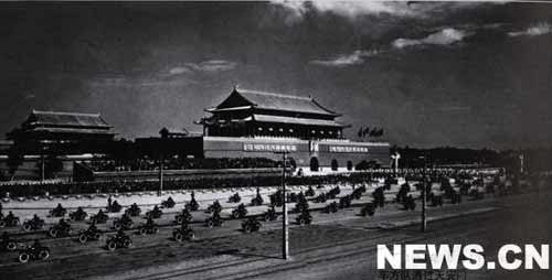 閱兵式開始。中國人民解放軍朱德總司令乘車馳過整隊(duì)而立的部隊(duì)前面,檢閱并向他們致節(jié)日的祝賀。閱兵后,朱德總司令登臨檢閱臺宣讀《中國人民解放軍總部給全國武裝部隊(duì)的命令》。