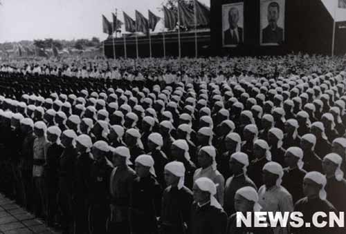 當他們雄赳赳地通過天安門廣場時,立即吸引住人們的注意。楊成武上將在天安門城樓上向毛主席和劉少奇、周恩來、朱德等同志介紹說:他們都是河北、山西每個縣和北京郊區(qū)的民兵代表,只訓(xùn)練了二十多天。毛主席和其他領(lǐng)導(dǎo)同志都連聲稱贊。