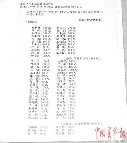 記者又走訪了鼓樓區(qū)紅十字會和與鼓樓區(qū)民政局合署辦公的區(qū)慈善分會。兩個(gè)會都是編制緊張,也就只有一個(gè)人具體負(fù)責(zé)捐贈事宜,但都表示沒有聽說過這件事。區(qū)慈善分會的一位人士說,他們的捐款,基本上都?xì)w到南京市慈善總會,統(tǒng)一進(jìn)行管理。