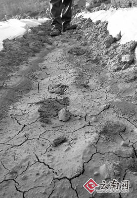 據介紹,干壩村所處海拔超過1300米,由于缺水易干旱得名。羊皮寨小組有一個水源點,不過進入3月后,水變得越來越小了,就連那里61戶人家的人畜飲水都不能保證,更不奢望有水澆灌烤煙地了。有村民告訴記者,不得已,他們開始用牛馬,或者用摩托車到很遠的地方去馱水!拔覀円患胰艘惶煲100公斤左右的水,洗臉腳的水要節(jié)約下來煮豬食,有時就連人的尿液也要節(jié)約下來喂牲畜!币幻迕裾f。