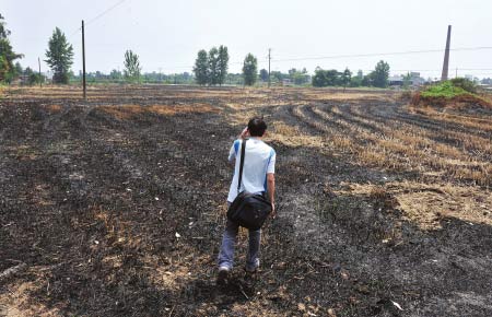“這個(gè)村地里留下的秸稈,不敢說(shuō)是100%,至少90%都是燒了的。”一正在地里插秧的村民告訴記者,幾天前他就將地里的秸稈全部燒了,清理完畢后,在地里灌上水準(zhǔn)備插秧。“收割機(jī)收完麥子后,還有半茬樁子留在地里,弄起來(lái)太麻煩,一把火燒了干凈。”