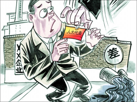 輝縣市有一家造紙廠的負責人是新鄉(xiāng)市人大代表,該造紙廠治污設(shè)備長期閑置,經(jīng)常偷排污水,環(huán)保部門去檢查時,負責人總是敷衍,由于其特殊的身份,在當?shù)卦斐闪瞬涣嫉挠绊憽_@次對人大代表調(diào)研評價時,環(huán)保部門給其一個“差”的評語,這位人大代表再次提名時沒能通過。