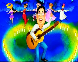在這部類似《功夫熊貓》山水畫風(fēng)格的卡通片中,趙小明露著門牙彈奏吉他,背景音樂是由美國著名鄉(xiāng)村歌手約翰·丹佛演唱的《Take Me Home,Country Roads》。