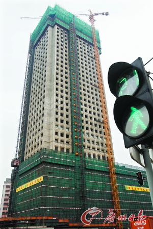 記者了解到,江南中心于1993年奠基,除了原名保華廣場外,又名江南港澳中心,原定竣工時間為1996年,規(guī)劃建58層高級寫字樓,為海珠區(qū)最高的標(biāo)志性建筑。一位不愿意具名的業(yè)內(nèi)人士介紹,該樓盤與隔街相望的江南大酒店原同屬香港一老板,但由于10多年前其位置被認(rèn)為不夠旺市,因此無買主過問,樓底幾層商鋪同樣難以出租出售,蓋至地面29層只好停工。隨后,一合作老板在該物業(yè)跳樓自殺,曾經(jīng)轟動一時。