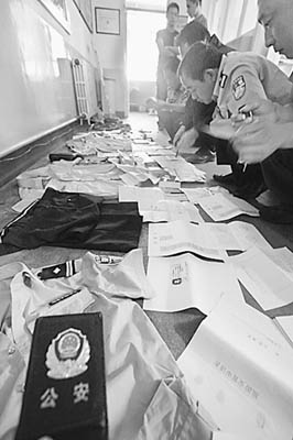 民警在搜查周某暫住在天平營(yíng)村的住所時(shí),查獲了偽造的內(nèi)蒙古自治區(qū)公安廳廳長(zhǎng)令、調(diào)函,警用人員報(bào)告書(shū)、成立派出所報(bào)告書(shū)、安置卡,購(gòu)買(mǎi)了警服、警號(hào)、警銜、警官證和法律法規(guī)書(shū)和私刻的公章以及冒充自治區(qū)公安廳某領(lǐng)導(dǎo)簽署的調(diào)他任薛家灣公安局局長(zhǎng)的調(diào)令等大量假證件。(本報(bào)記者 李玉波)