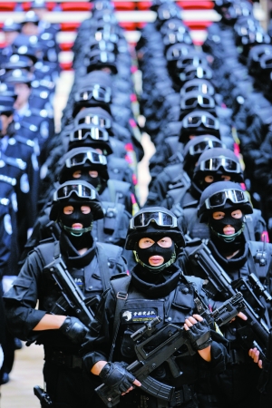 23日,首都舉行國慶安保誓師大會,民警、武警、消防等3000余名代表宣誓,標志著國慶60周年安保工作全面啟動。