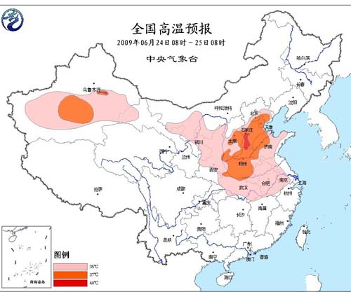 中新網(wǎng)6月24日電 據(jù)中國氣象局網(wǎng)站消息,今天白天,北京、天津、河北、河南以及山東等省成為太陽的重點(diǎn)“烘烤”對象,中央氣象臺今晨繼續(xù)發(fā)布高溫預(yù)報(bào),預(yù)計(jì)上述地區(qū)今天的最高氣溫將到37~39℃,局地可達(dá)40℃。據(jù)中央臺專家介紹,這樣的高溫天氣會隨著一股南下的冷空氣,有望在26日結(jié)束。
