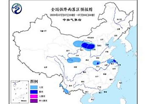 中新網(wǎng)7月7日電 中央氣象臺(tái)今日06時(shí)繼續(xù)發(fā)布暴雨預(yù)報(bào):預(yù)計(jì),今天白天到夜間, 內(nèi)蒙古西部、寧夏北部、陜西北部、山西北部、青海東南部、甘肅南部、四川北部、河南南部、湖北北部、蘇皖中南部、云南西南部等地的部分地區(qū)有大雨,其中內(nèi)蒙古河套地區(qū)、陜西北部、山西北部、湖北東北部、江蘇中部等地的部分地區(qū)有暴雨。