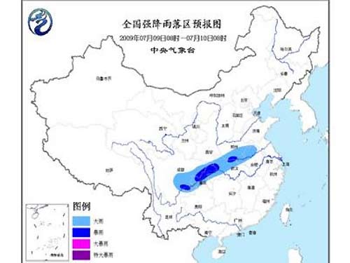 中新網(wǎng)7月9日電 中央氣象臺今日06時發(fā)布暴雨預(yù)報:預(yù)計,今天白天到夜間,川西高原東南部、四川盆地東部和南部、重慶西部和北部、湖北西北部、河南南部、安徽北部等地有大雨或暴雨。