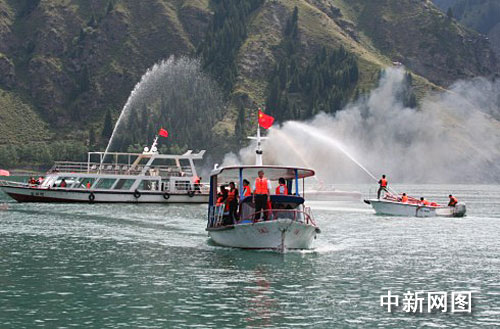 中新社烏魯木齊八月五日電 (記者 孫亭文)四日,新疆維吾爾自治區(qū)交通廳地方海事局在新疆著名旅游景點(diǎn)天山天池舉行水上安全應(yīng)急演習(xí)。據(jù)介紹,是次演習(xí)出動(dòng)各類船艇十余艘,參演人員近百名,是新疆水上舉辦的參演力量最強(qiáng)、參演科目最多、險(xiǎn)情較為復(fù)雜的一次綜合性水上安全應(yīng)急處置,是對水上安全突發(fā)事件發(fā)生時(shí)與地方各相關(guān)部門、單位密切協(xié)作配合的一次“實(shí)戰(zhàn)練兵”。