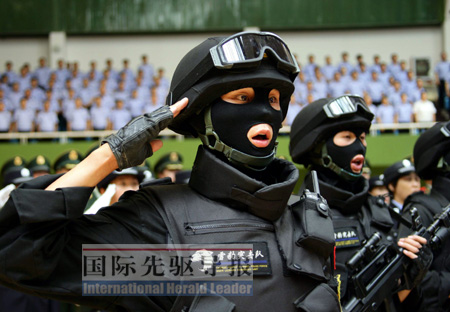 在最繁華的西單商業(yè)街,出現(xiàn)了戴著墨鏡的特警。8月22日,國慶安保巡邏防控啟動儀式在這里進(jìn)行,百余名由特警、民警、保安組成的巡邏隊(duì)伍,在鬧市街頭巡邏。這著實(shí)讓百姓們開了把眼界!皠偪吹綍r有一絲緊張,”當(dāng)天,正在西單逛街的彭女士說:“但覺得很安全,畢竟是國慶嘛。”
