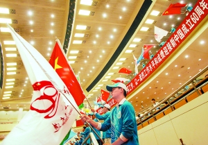 “沒有共產(chǎn)黨,就沒有新中國!”今天上午,在各界群眾嘹亮的歌聲中,北京市迎接中華人民共和國成立60周年動員大會召開。來自群眾游行和國慶聯(lián)歡晚會代表、志愿者代表等共1700人參加了動員大會。